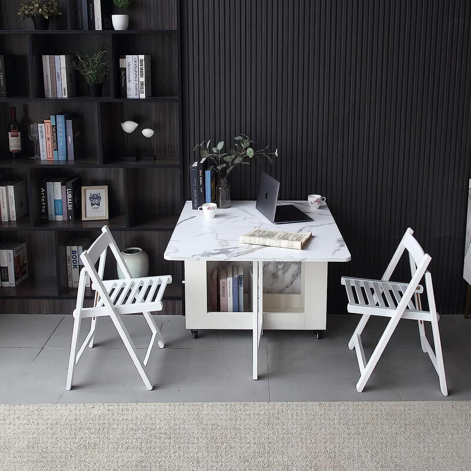 The folding dining table is made of high-quality plywood, which have excellent stability and durability, so the foldable dining table is of better quality and lasts longer. This space saving table has 4 premium swivel casters underneath for smooth movement. Two of the casters are equipped with brakes for easy control.