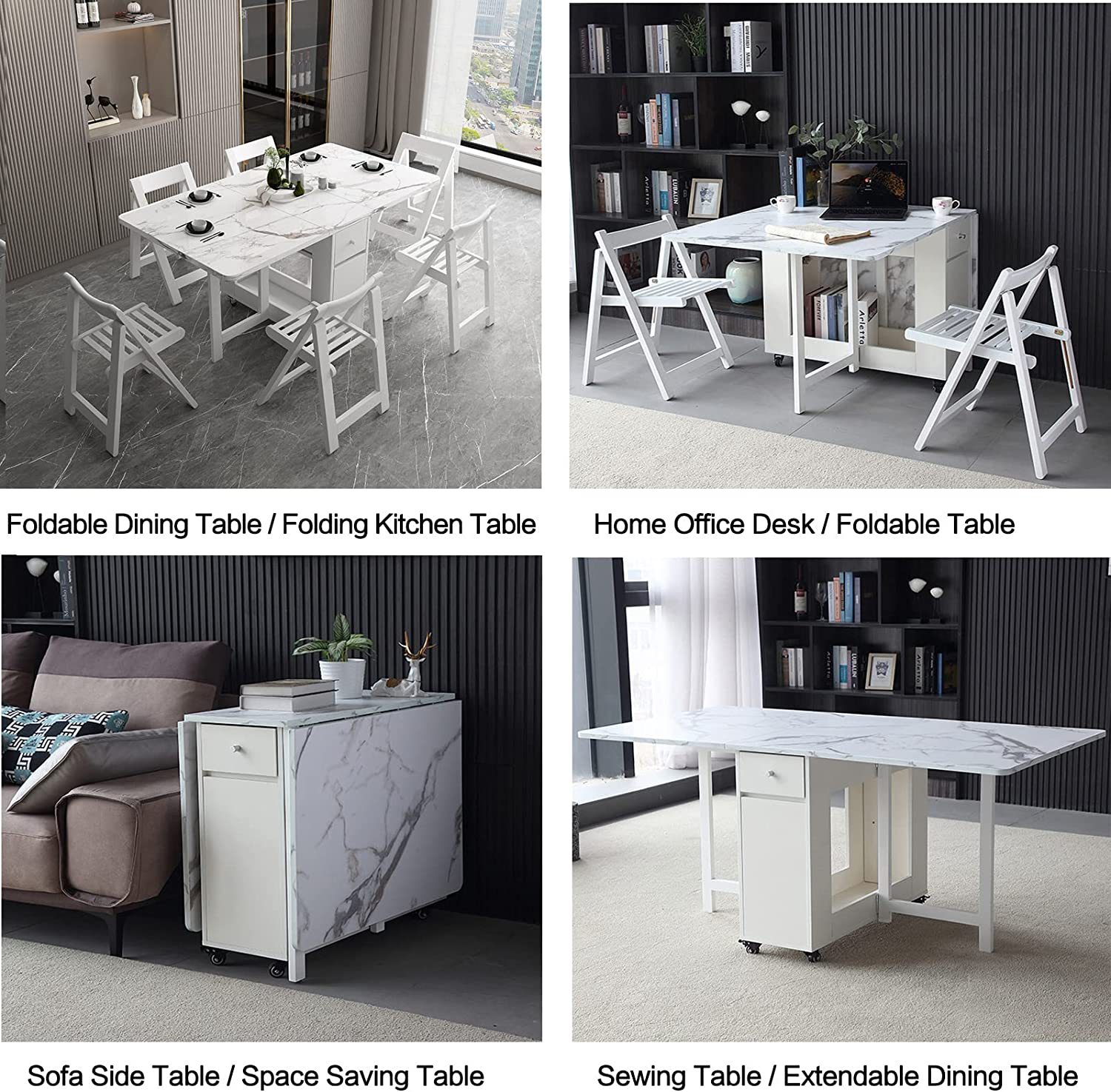 Space Saving Table in 4 Forms (White)