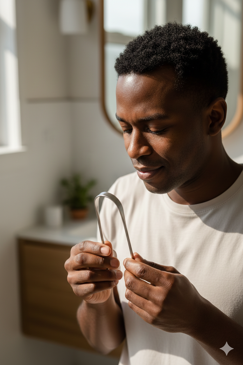 The toothpaste rebuilds weakened enamel, and the tongue scraper lifts the odor-causing coating from your tongue—giving you a cleaner mouth and long-lasting fresh breath.
